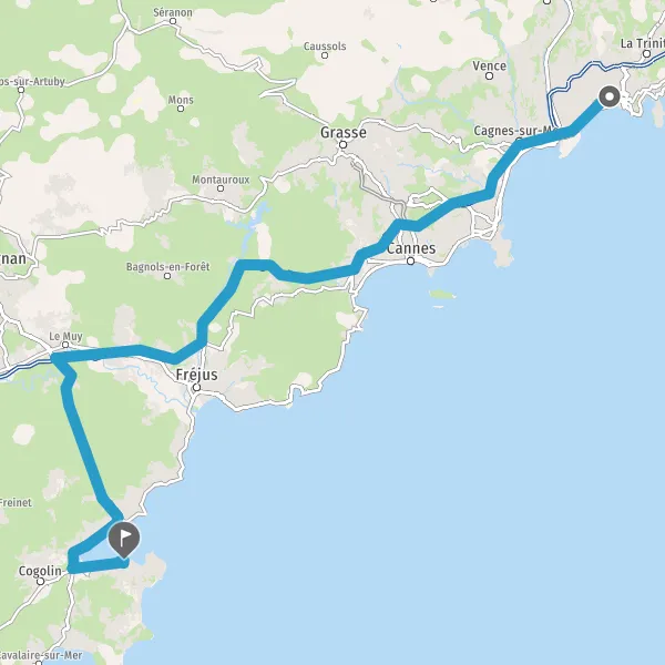 Itinéraire en voiture de Nice 06000-06300 Provence-Alpes-Côte d'Azur (France) à Saint-Tropez 83990 Provence-Alpes-Côte d'Azur (France)