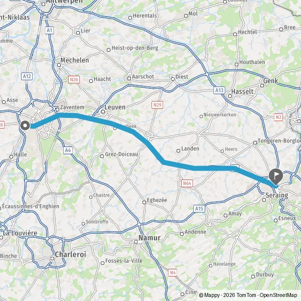 Prendre à droite et rejoindre N6 (Bergense Steenweg). Continuer sur 500 mètres