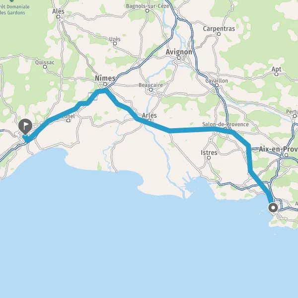 Itinéraire en voiture de Marseille 13001-13016 Provence-Alpes-Côte d'Azur (France) à Montpellier 34000-34090 Occitanie (France)