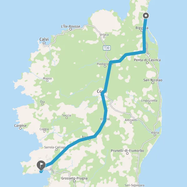 Tourner légèrement à droite sur T20 (Carrughju Anziana Gendarmeria) et continuer sur 14 kilomètres