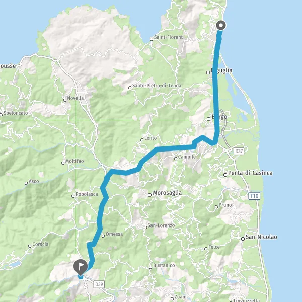 Tourner légèrement à droite sur T20 (Carrughju Anziana Gendarmeria) et continuer sur 12 kilomètres