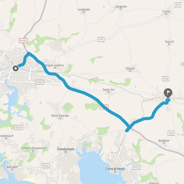 Au rond-point, prendre la 2ème sortie sur D765 (Route de Rosporden) et continuer sur 4,6 kilomètres