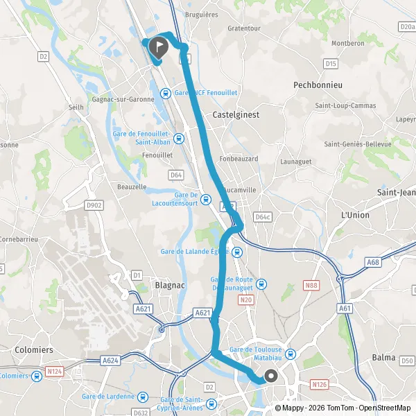 | Distance en voiture | 14,2 km à 21,0 km |