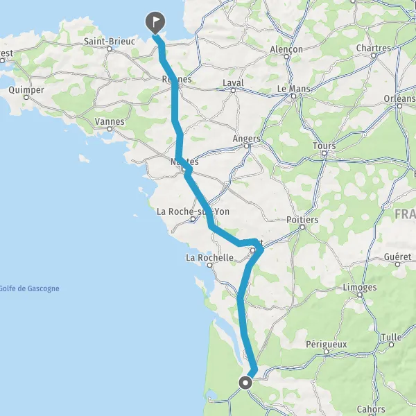 Prendre à droite et rejoindre A83. Continuer sur 150 kilomètres