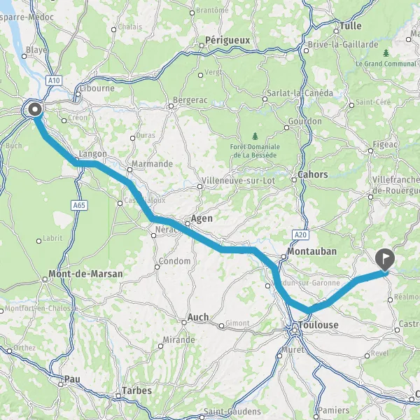 Sortir et rejoindre A62. Continuer sur 850 mètres