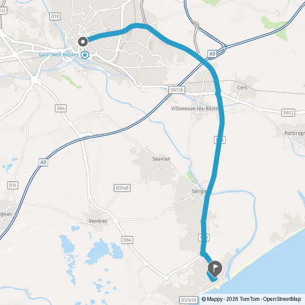 Au rond-point, prendre la 2ème sortie sur D19 D64 (Route de Valras) et continuer sur 1,4 kilomètre