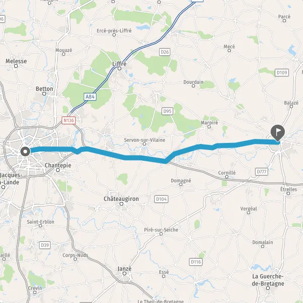 Tourner légèrement à droite sur D857 (Rue de Vitré) et continuer sur 1,3 kilomètre