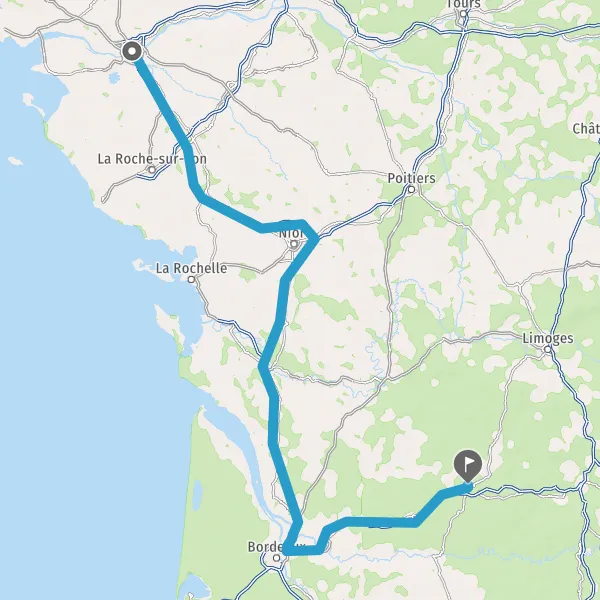 Au rond-point, prendre la 2ème sortie sur Boulevard de Vendée et continuer sur 151 kilomètres