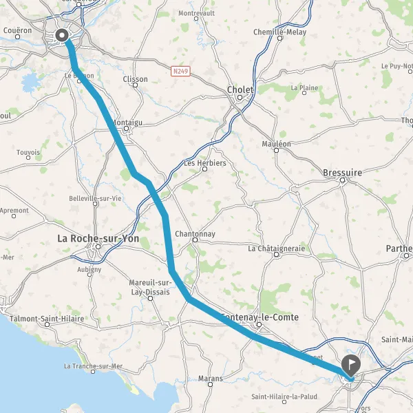 Au rond-point, prendre la 2ème sortie sur Boulevard de Vendée et continuer sur 119 kilomètres