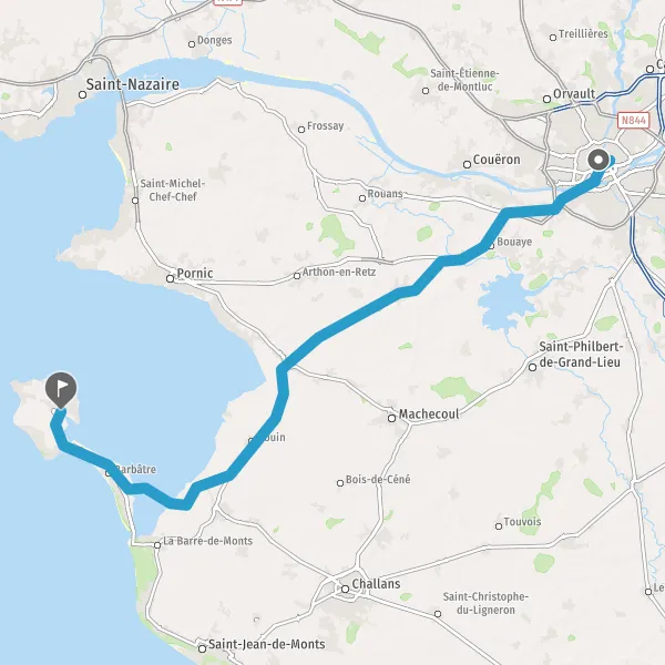 Au rond-point, prendre la 1ère sortie sur D948 (Route de Noirmoutier) et continuer sur 2,3 kilomètres