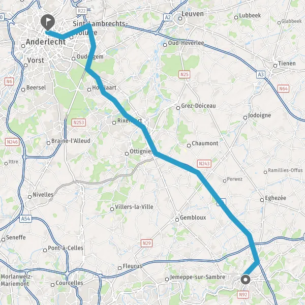 Tourner légèrement à droite sur N91 (Chaussée de Louvain) et continuer sur 2,5 kilomètres
