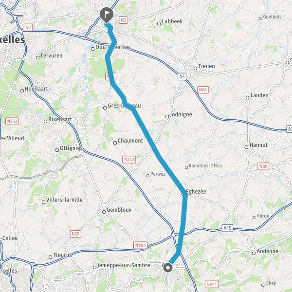 Tourner légèrement à droite sur N91 (Chaussée de Louvain) et continuer sur 2,5 kilomètres
