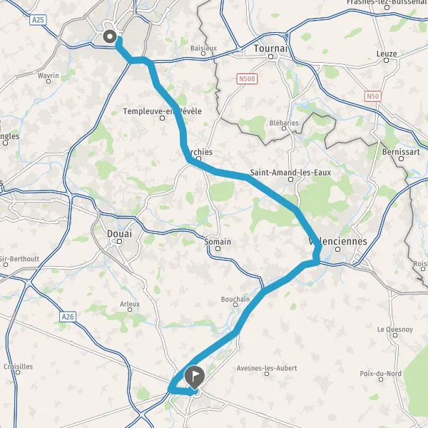 Prendre à droite et rejoindre A26 E17. Continuer sur 27 kilomètres