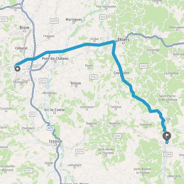 Tourner légèrement à droite sur D212 (Route de Billom) et continuer sur 2,2 kilomètres