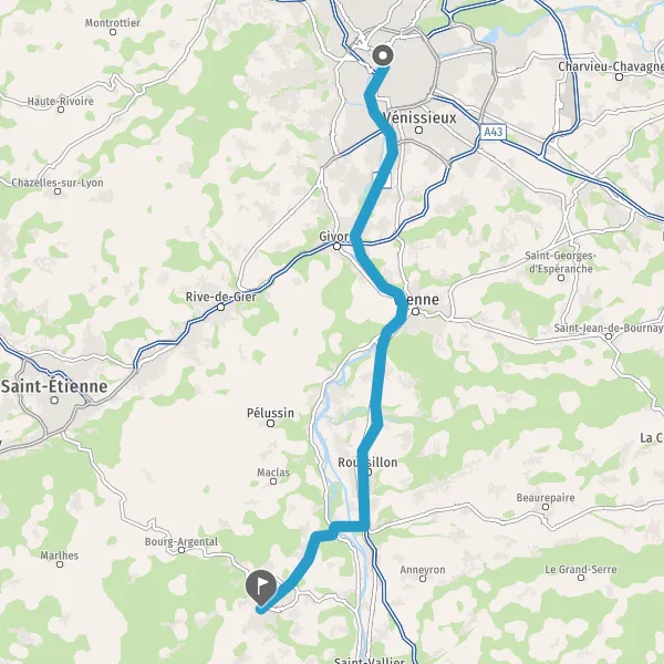 Au rond-point, prendre la 2ème sortie sur D121 (Route de Lyon) et continuer sur 1,2 kilomètre