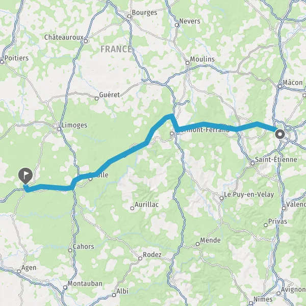 Prendre à droite et rejoindre A89 E70. Continuer sur 161 kilomètres