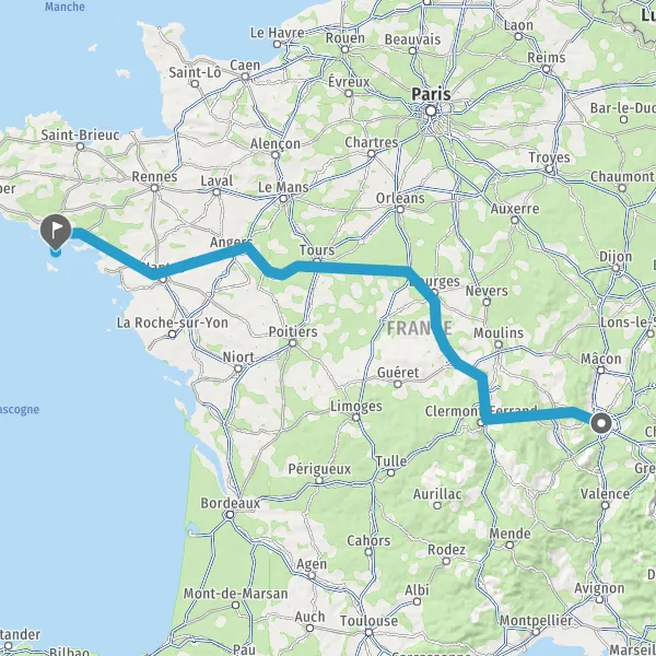Prendre à droite et rejoindre A85 E604. Continuer sur 205 kilomètres