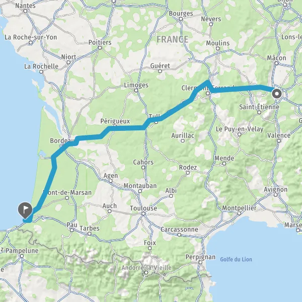Prendre à droite et rejoindre A63. Continuer sur 183 kilomètres