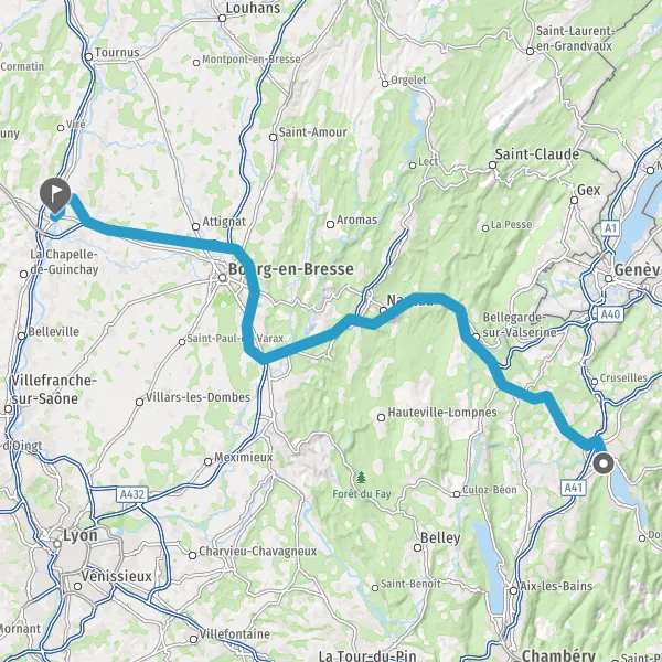 Prendre à droite et rejoindre A41. Continuer sur 25 kilomètres