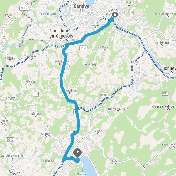 Au rond-point, prendre la 4ème sortie sur D1206 (Route d'Étrembières) et continuer sur 800 mètres