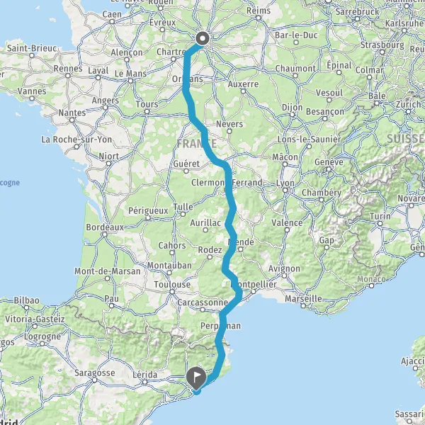 Itinéraire en voiture de Paris 75001-75116 Île-de-France (France) à 08001-08980 Barcelone Catalogne (Espagne)