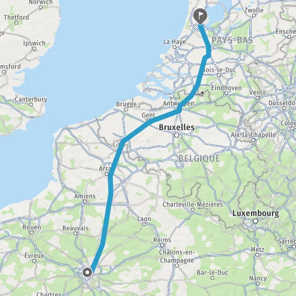 Continuer et rejoindre A1 A1 E15 E19. Continuer sur 121 kilomètres