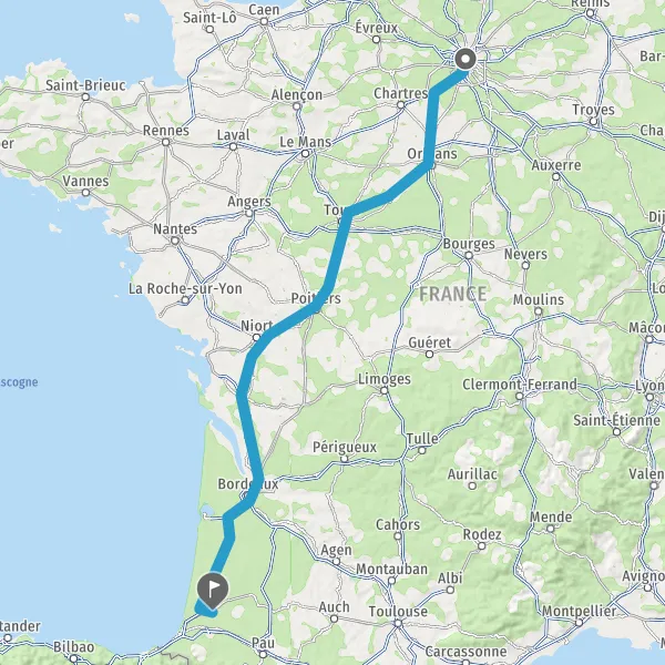 Prendre à droite et rejoindre A63. Continuer sur 139 kilomètres