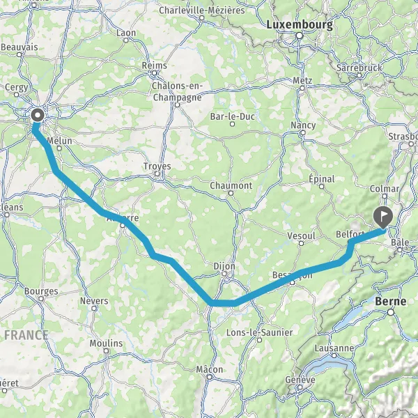 Itinéraire en voiture de Paris 75001-75116 Île-de-France (France) à Mulhouse 68100-68200 Grand Est (France)