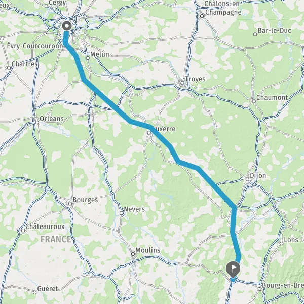 Prendre à droite et rejoindre A6a E5. Continuer sur 296 kilomètres