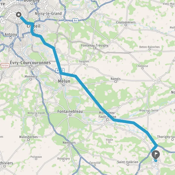 Prendre à droite et rejoindre N104 (La Francilienne). Continuer sur 21 kilomètres
