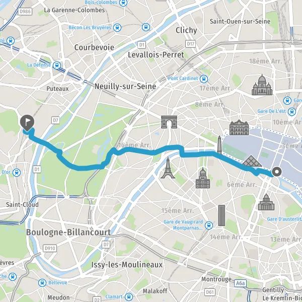 Tourner légèrement à droite sur Quai d'Orsay et continuer sur 550 mètres