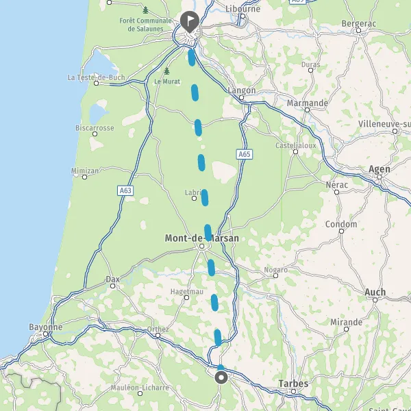 Venir à Bordeaux par la route. 4 autoroutes mènent à Bordeaux : A10 depuis Paris et les régions de l'Ouest et du Nord via Poitiers, Nantes, Orléans. A62 depuis la Méditerranée via Toulouse, Montauban et Agen. A63 depuis l'Espagne via Bayonne et Dax. A89 depuis le Sud-Est et l'Est via Lyon, Clermont-Ferrand et Périgueux. Venir à Bordeaux en train : la gare Saint-Jean accueille le TGV Bordeaux/Paris-Montparnasse, 4 allers-retours Bordeaux/Lille, 2 allers-retours Bordeaux/Strasbourg, 200 TER (Train express régionaux) reliant la capitale régionale à toutes les villes d'Aquitaine. Venir à Bordeaux en avion : l'aéroport international de Bordeaux Mérignac est situé à 12 km du centre ville. L'aéroport est desservi par la liane 1+ du réseau TBC (elle relie l'aéroport à la gare Saint-Jean de Bordeaux) et par la navette 30'direct (au départ du Hall B, ces navettes directes conduisent à la gare SNCF Saint Jean en 30 minutes selon la circulation). Venir à Bordeaux en bâteau : les paquebots de croisière et les bateaux de plaisance s'ammarent au célèbre Port de la Lune.