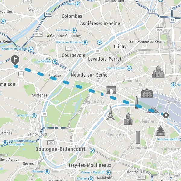 Itinéraire en autocar de Paris 75001-75116 Île-de-France (France) à Nanterre 92000 Île-de-France (France)
