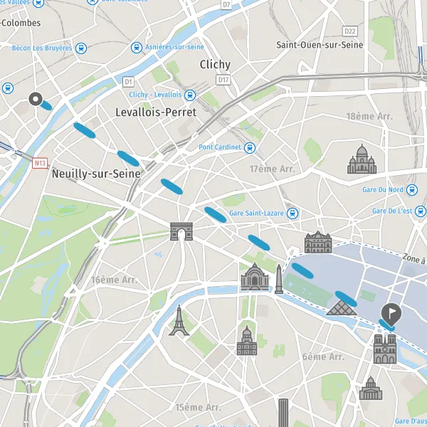 Venir à Paris. Paris est desservie par 6 gares situées en plein centre. De ces points, on peut prendre le métro ou monter dans l’un des taxis qui stationnent devant chaque gare. Pour les arrivées aux aéroports, plusieurs moyens de transport permettent de rejoindre le centre de la capitale (Cars Air France, Orlyval, RoissyBus, la ligne 14 du métro). En car : plusieurs compagnies desservent la capitale: BlaBlaCar et Flixbus. En bateau : pour arriver en bateau à Paris, il faut accoster au port de l’Arsenal. Se déplacer à Paris : en transports en commun (bus, métro, RER, tramway), en taxi ou en VTC, à vélo (700 km de voies cyclables) ou en vélo libre service avec Vélib', en transports insolites (cabriolet, ""cab"" anglais, limousine, vélo électrique), en Batobus (9 escales pour découvrir Paris), en covoiturage ou en voiture en libre service avec Clem, Communauto, Zity, ShareNow et Free2Move, en voiture ou à pied.