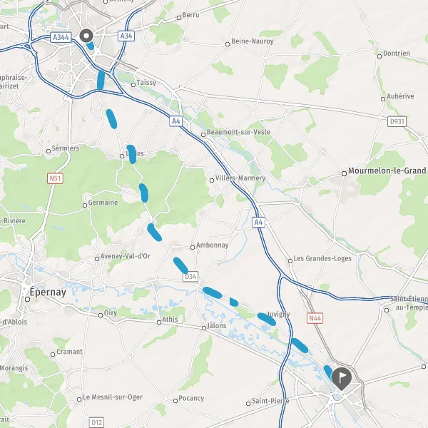 Au rond-point, prendre la 2ème sortie sur D1 (Rue de Reims) et continuer sur 7,5 kilomètres