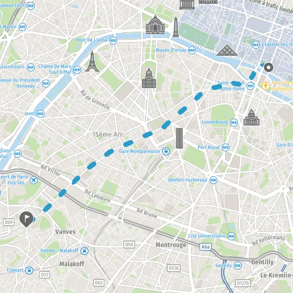 • Continuer Rue de Vaugirard sur 2,1 kilomètres