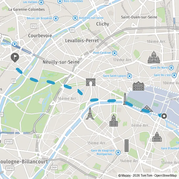 Tourner à gauche sur Allée de Longchamp et continuer sur 20 mètres
