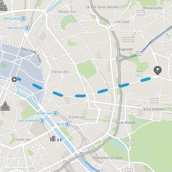 Trajet de Paris (75000) à Montreuil (93100) à pied