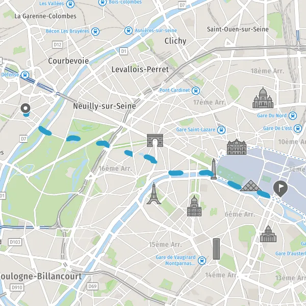 Tourner à droite sur Route de la Porte Dauphine à la Porte des Sablons et continuer sur 160 mètres