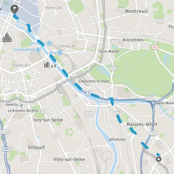 Tourner légèrement à gauche sur Quai de la Rapée et continuer sur 290 mètres