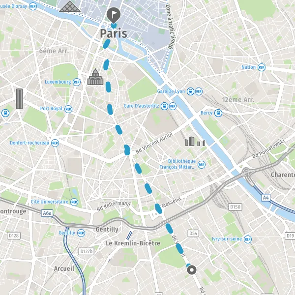 Tourner légèrement à droite sur Avenue des Gobelins et continuer sur 15 mètres