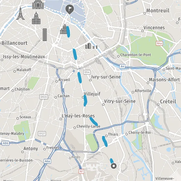 Tourner légèrement à droite sur Rue de Villejuif et continuer sur 2 kilomètres