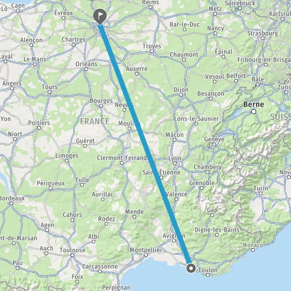 | Distance en train | 663 km à 718 km |