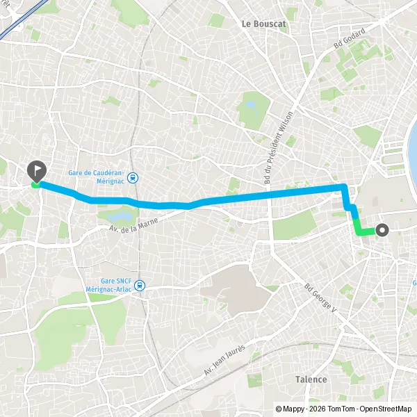 | Distance en transports en commun | 6,5 km à 8,4 km |
