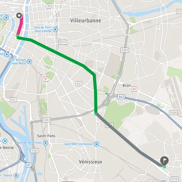 | Distance en transports en commun | 12,8 km à 15,1 km |
