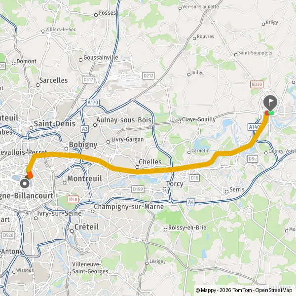 | Distance en transports en commun | 42,0 km à 42,3 km |