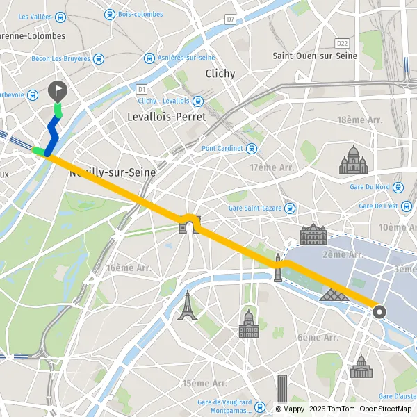 | Distance en transports en commun | 9,2 km à 11,5 km |