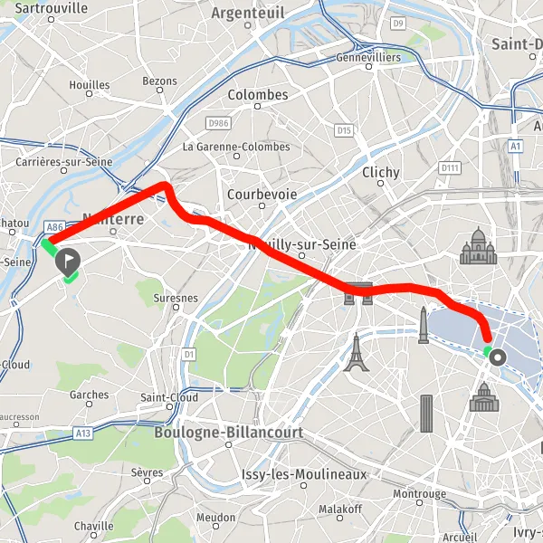 | Distance en transports en commun | 14,2 km à 15,7 km |