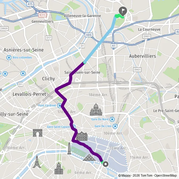 | Distance en transports en commun | 10,1 km à 10,6 km |