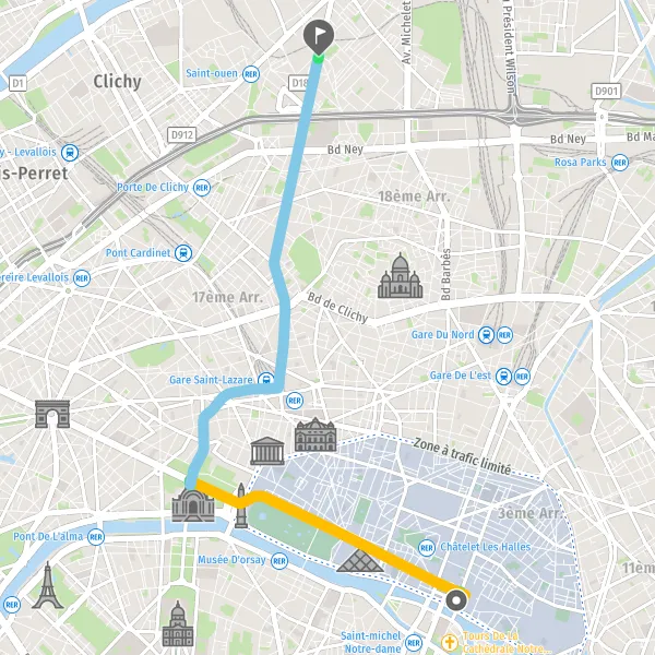 | Distance en transports en commun | 6,0 km à 7,7 km |